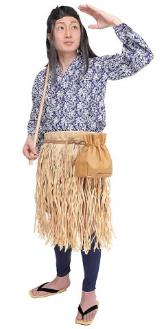 釣竿持って、亀を連れて浦島太郎に変身!【セット内容】着物、蓑スカート、巾着付腰紐、インナースカート【サイズ】男性サイズ、身長:180cmまで、B:102cmまで、W:98cmまで、H:102cmまで、肩幅:54cm、袖丈:44cm、※モデル身長:173cm【メイン部分の寸法】着物丈:70cm、腰みの丈:65cm【開き・仕様】着物:前開き面テープ、腰みの:左脇開き面テープ【素材】着物:ポリエステル65%、綿35%、蓑スカート:指定外繊維(紙)100%【洗濯】着物:洗濯不可、塩素系漂白剤による漂白不可、アイロン不可、ドライクリーニング不可インナースカート:洗濯機不可、弱い手洗い可、塩素系漂白剤による漂白不可、アイロンは中温で当て布使用、ドライクリーニング不可※ビニール開封後の商品は、不良品の場合を除き、返品・交換ができません。